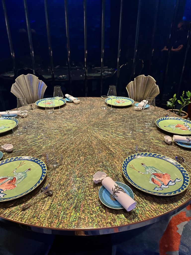 The aquarium has been extended through much of the Ristorante L’Olivo at Al Mahara, which is located just off reception. Holding 990,000-litres of water and hundreds of species of marine life, it’s impressive. These photographs are from within the restaurant.